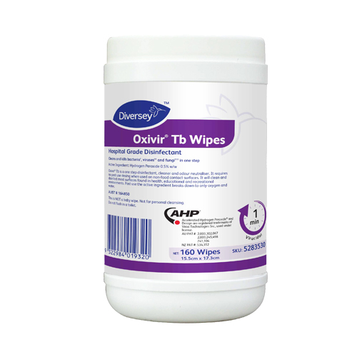 Diversey Oxivir Tb Wipes are HOSPITAL-GRADE DISINFECTANT CLEANER WIPES Based on proprietary Accelerated Hydrogen Peroxide (AHP) technology to deliver fast, broad spectrum disinfection and cleaning performance in one step. Kills viruses and bacteria such as MRSA, VRE, Influenza A, Norovirus, HIV and Hepatitis B fast!