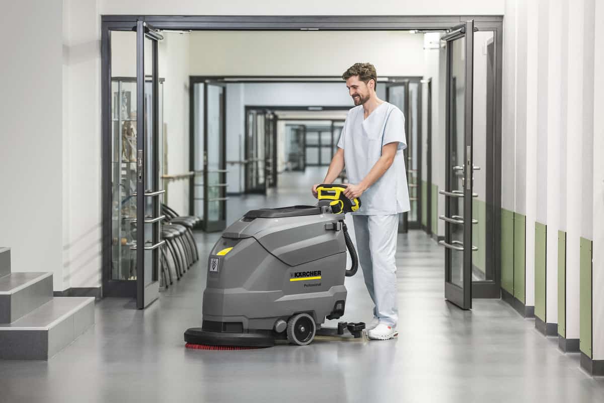 The BD 50/50 C Bp Classic offers a clear view of the area to be cleaned due to the compact dimensions of this battery-powered scrubber dryer with sophisticated disc technology. The operation of this machine is as clear as the view with the EASY Operation Panel from Kärcher. Machine features have been reduced to the most important settings and functions to enable use after brief instruction. We recommend the BD 50/50 C Bp Classic for use in supermarkets, hotels or healthcare facilities.