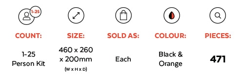 National workplace First Aid kit “ High risk. Designed with Safe Work Australias First Aid code of practice (July 2019). Various case options including Metal, Plastic tackle and Softpack. Also available with a complete refill pack. All cases include a carry handle. Tamper resistant zip tied.