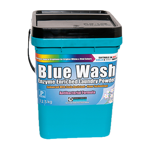 Tasman Chemicals Bluewash is a free flowing blue powder combining a blend of powerful cleaning agents, detergents and specialty optical brighteners. BLUEWASH ensures maximum cleaning performance on all soils encountered leaving fabrics clean and bright with a fresh residual fragrance. BLUEWASH can be used in all types of washing machines, front and top loading to remove a wide range of household stains including grease, fat, blood, oil, dirt and perspiration. BLUEWASH is also suitable in industrial washing machines for use in on premise laundries such as nursing homes, motels and hotels. FEATURES & BENEFITS: * Concentrated powder 100% active. * Provides a quality low cost wash. * Controlled foam characteristics. * Suitable for top and front loading machines. * Optimised levels of optical brighteners. * Ensures maximum whiteness and brightness is attained. * Contains enzymes. * Quickly removes blood and protein stains. * Excellent cleaning results in hot or cold water. * Provides flexibility of wash temperature and energy savings. * Contains a specialty substantive perfume. * Leaves a fresh residual fragrance on the fabric. * Contains water softeners. * Suitable for all hard water conditions. * Contains soil release polymers. * More efficient washing of clothes. * Contains Anti-Bacterial Agent